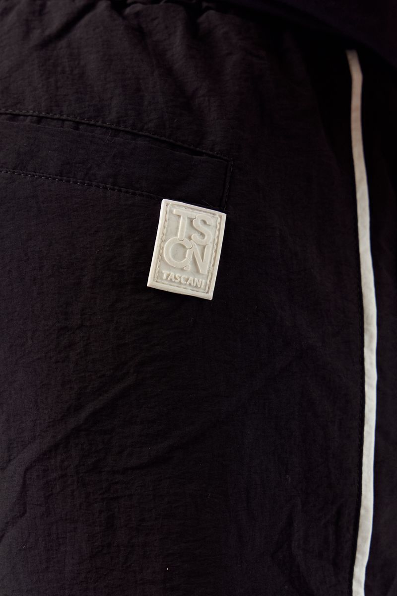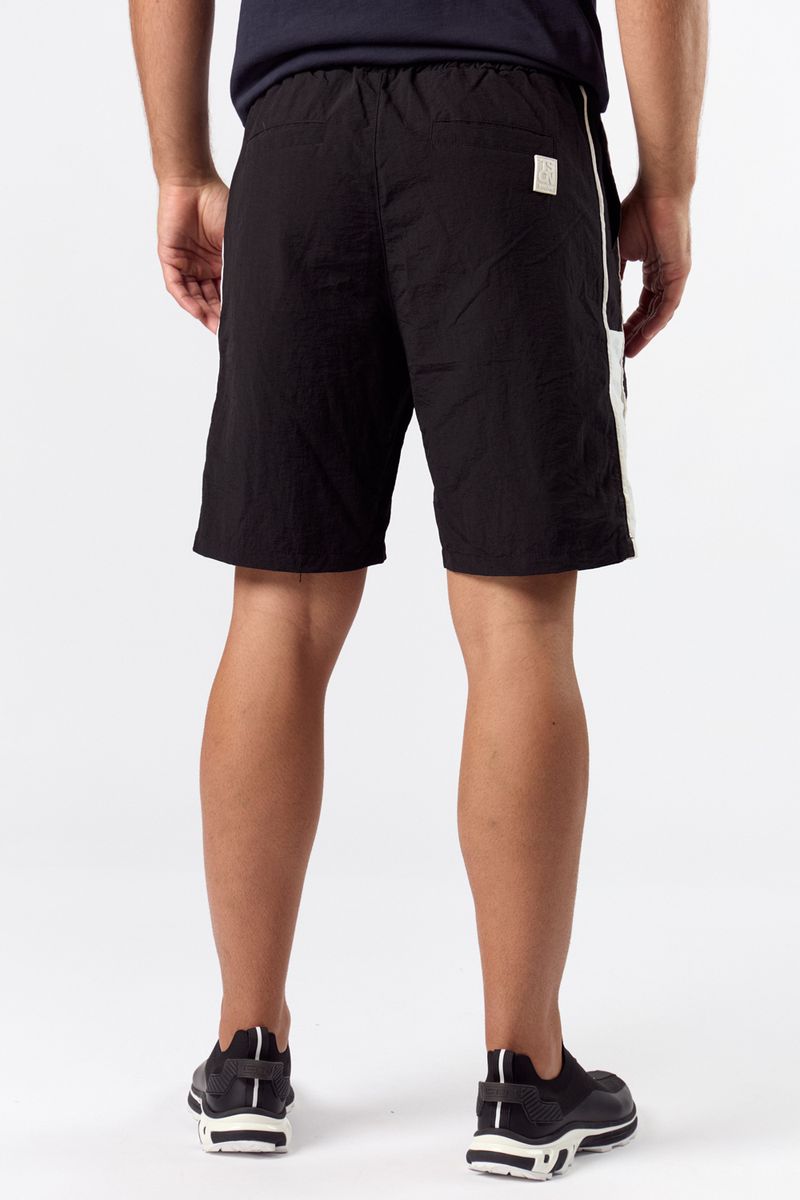 La Bermuda Teruel combina una estética deportiva y urbana. Confeccionada en tela Tech liviana color negro, se destaca por sus recortes y vivos en blanco que aportan contraste.