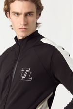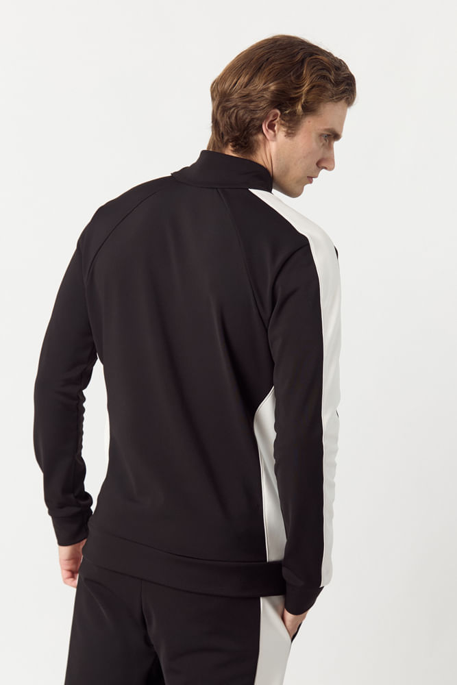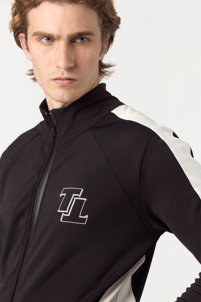 Su cierre de acceso a contratono añade un detalle distintivo, mientras que el elástico en los laterales de las mangas en bicolor (blanco y negro) aporta un toque dinámico y deportivo. Además, la grifa blanca institucional refuerza su identidad de marca con un acabado exclusivo.