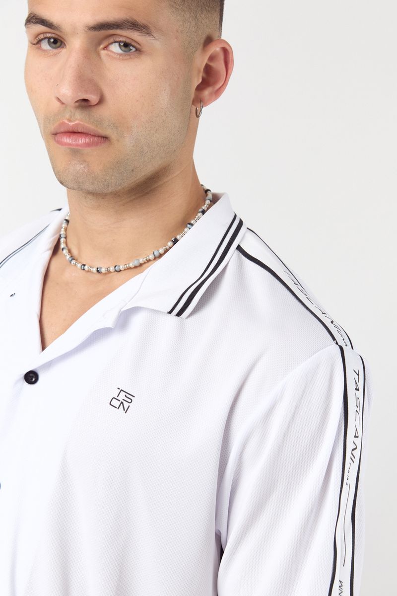 La Mc Olezi es una camisa que combina el corte clásico con detalles urbanos. Su confección en piqué fino aporta textura y frescura, mientras que las tiras laterales con texto Tascani en contraste blanco le suman identidad y dinamismo.