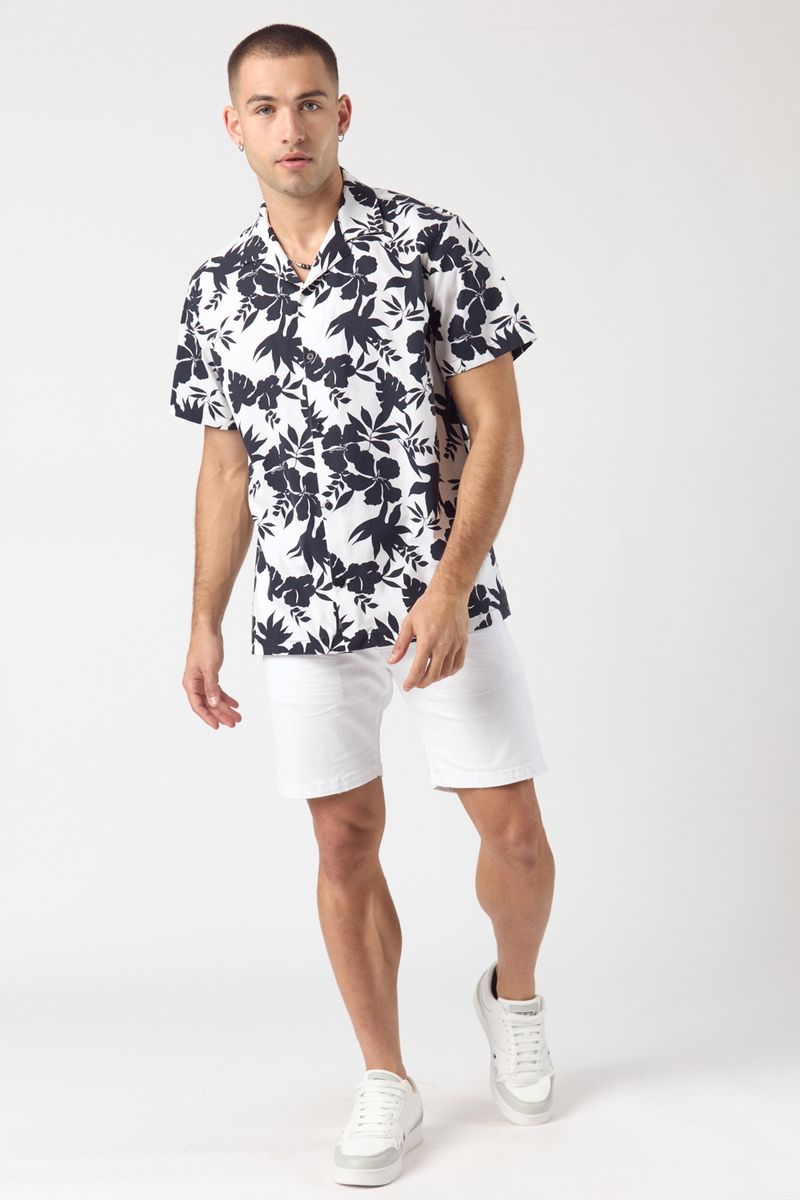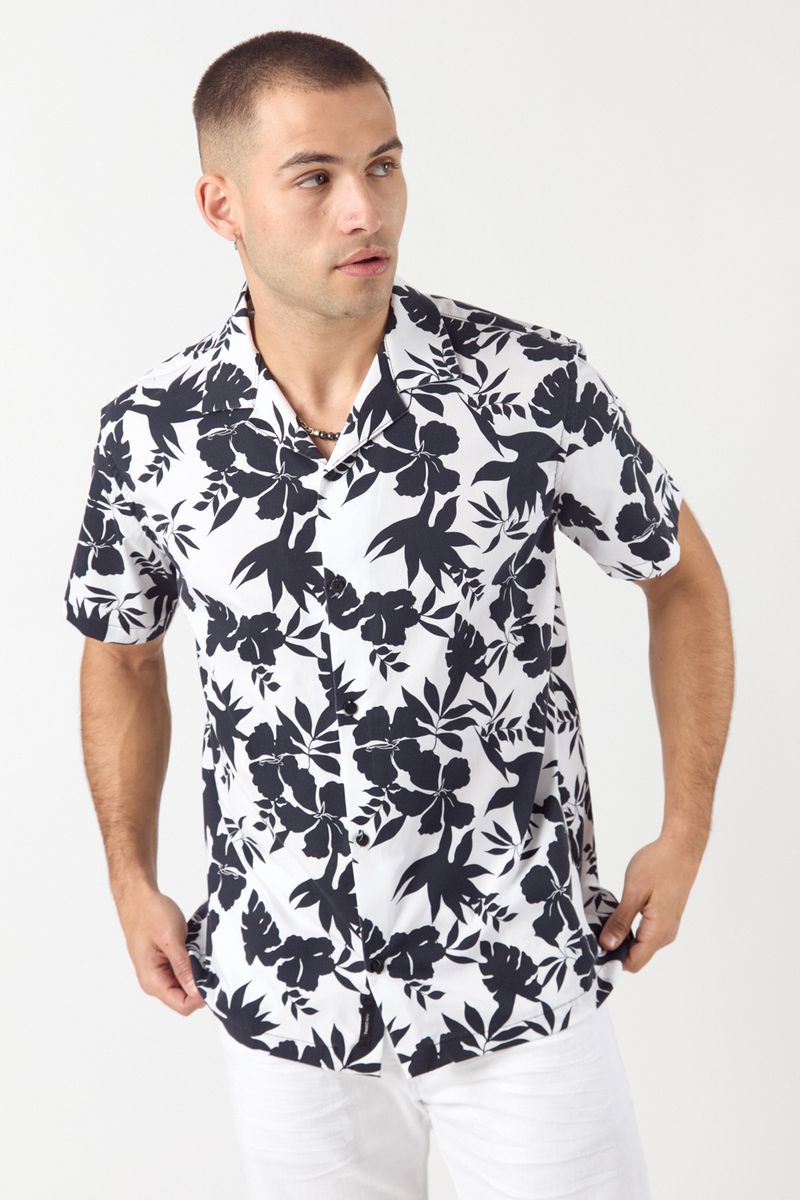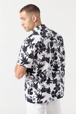 Camisa de calce relaxed fit confeccionada en poplin estampado. Cuello bowling y detalle de comunicación de marca con etiqueta a tono en cartera interna.