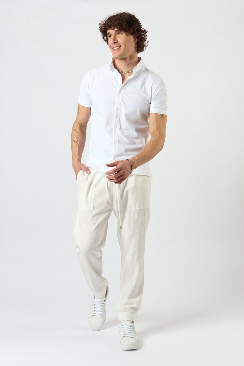 Confeccionado en lino premium importado color blanco, combina la frescura y textura natural del lino con una silueta relajada.