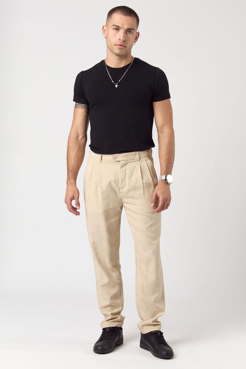 el Percio Arena combina la elegancia del pantalón de vestir con una confección responsable y materiales de alto nivel. Su corte con pinzas y caída relajada aporta estructura sin rigidez, mientras que la mezcla de lino y fibras vegetales ofrece una experiencia de uso liviana, suave y naturalmente transpirable.