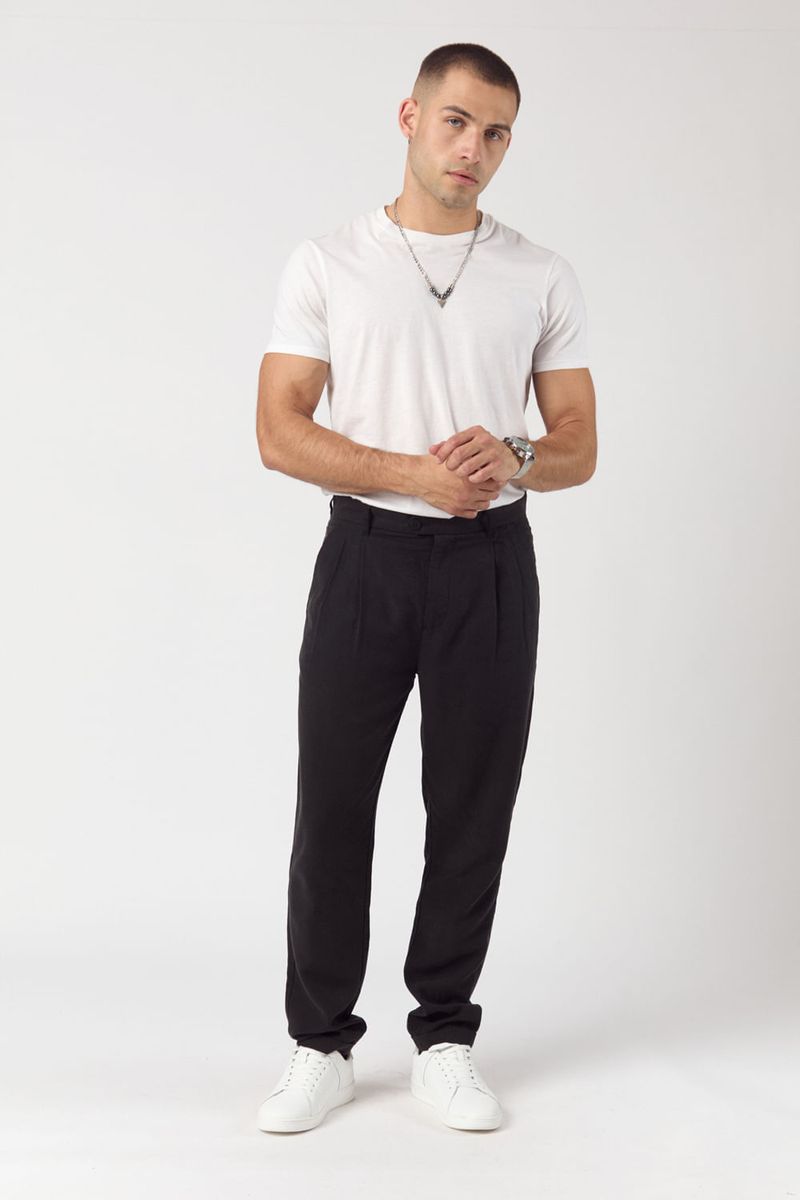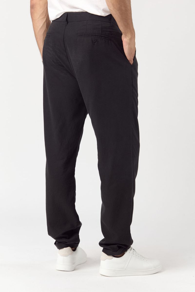 el Percio Negro combina la elegancia del pantalón de vestir con una confección responsable y materiales de alto nivel. Su corte con pinzas y caída relajada aporta estructura sin rigidez, mientras que la mezcla de lino y fibras vegetales ofrece una experiencia de uso liviana, suave y naturalmente transpirable.
