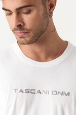 Confeccionada en jersey liso 100% algodón, garantiza una textura suave y agradable al tacto, brindando frescura y confort durante todo el día. Su estampa TASCANI DNM abrillantada en color gris añade un detalle distintivo y sofisticado, elevando su estilo con un acabado elegante.