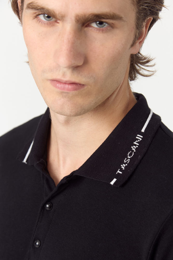 - Detalles personalizados: Cuello con logo Tascani tejido, en armonía con los puños personalizados en blanco y negro, destacando su identidad visual.
