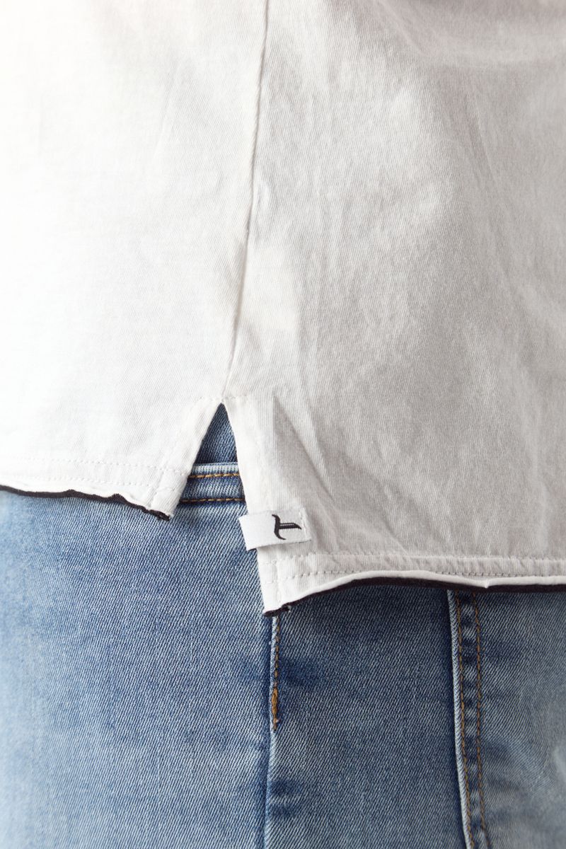 -Color Blanco liso con vivos negros en mangas y ruedo: contraste sutil, impacto visual.