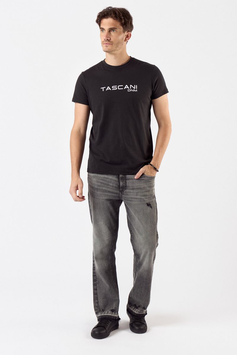 Remera de corte clásico, manga corta, cuello redondo y terminación de ruedo recto, con estampa TASCANI en delantero con técnica de flock, dándole un efecto aterciopelado. Confeccionada en jersey 40/1 de ALGODÓN 100% PIMA, con un tacto suave, liviano ofreciendo una excelente calidad y comodidad que proporciona esta fibra.