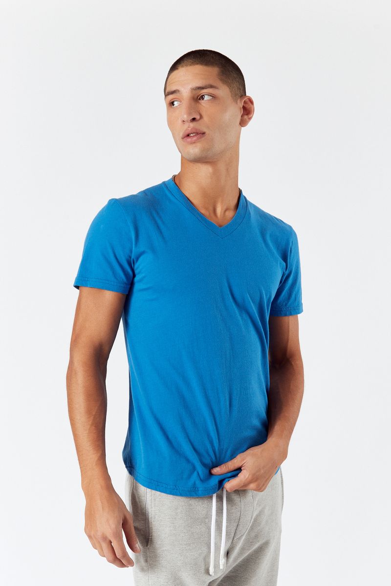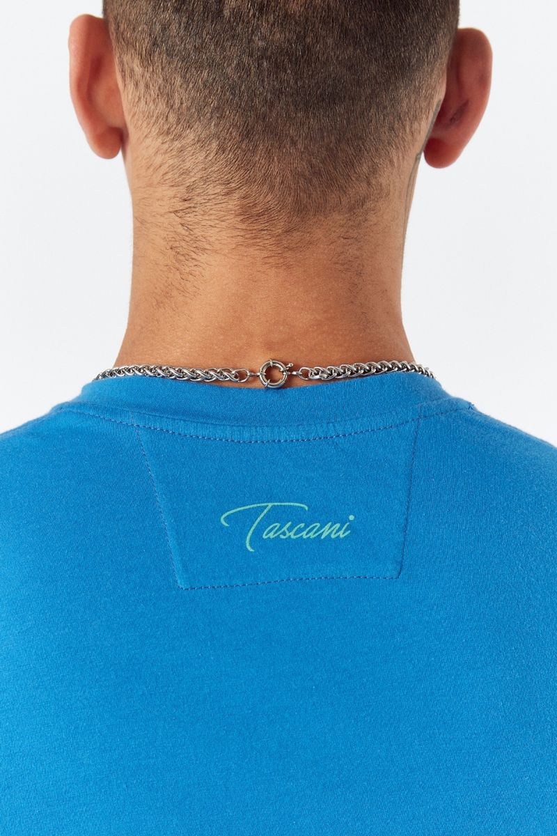 Remera manga corta de calce clásico y escote en V. Realizada en jersey liso. Comunicación de marca con estampa tascani en cursiva por debajo del escote espalda.