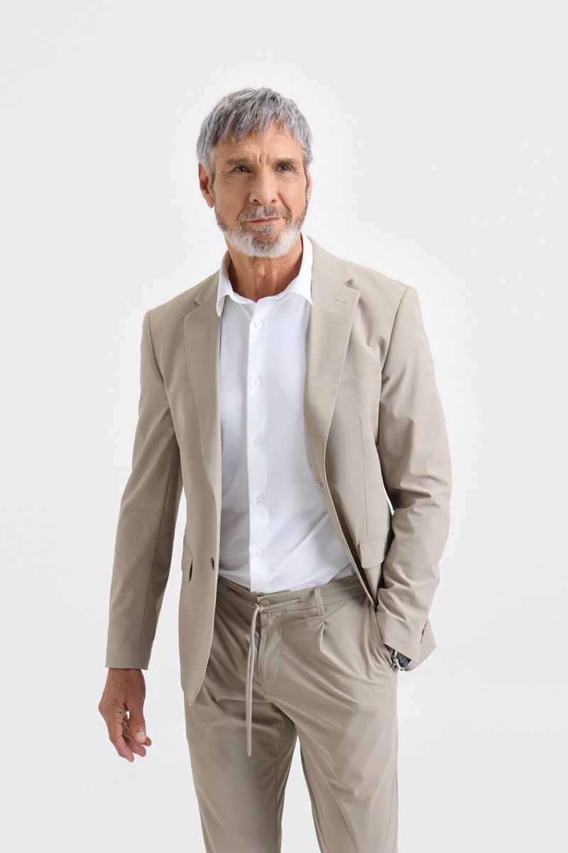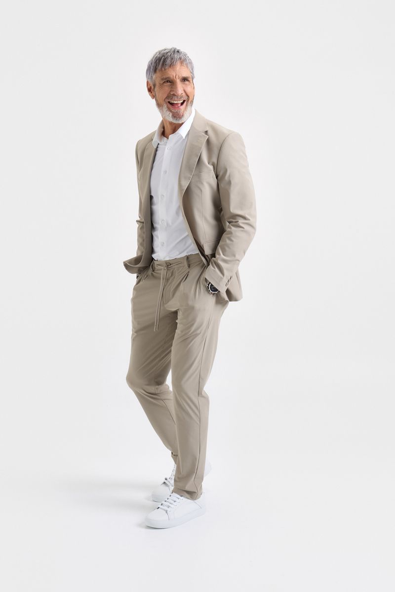 Ideal para quienes buscan destacar con estilo propio. Su corte slim y estructura precisa realzan la silueta sin perder comodidad, mientras que el Arena profundo aporta versatilidad y sofisticación.